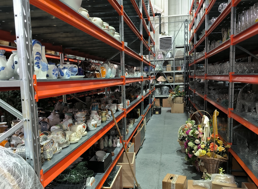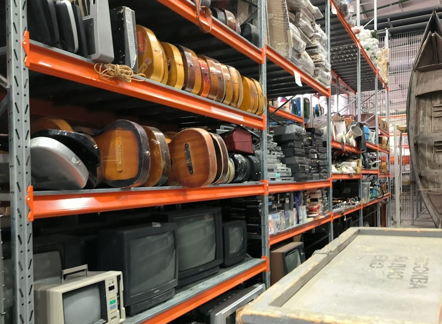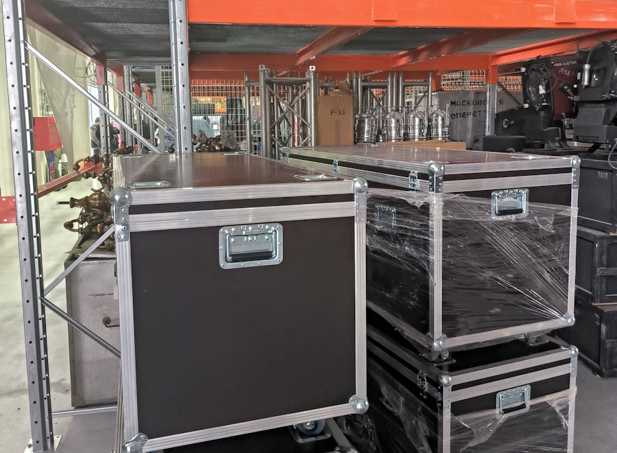 Особенностью складских процессов кинопарка является работа с нестандартными товарами: присутствуют негабаритные SKU и длинномеры. Для хранения применяются специальные системы, например, «прясла» — металлические рамы, к которым прислоняются декорации. Разгрузка и погрузка осуществляются на улице, а входящий поток товаров поступает «навалом». Заказы входящего и исходящего потока обычно включают фиксированные наборы SKU, которые привязаны к конкретному спектаклю или постановке.
